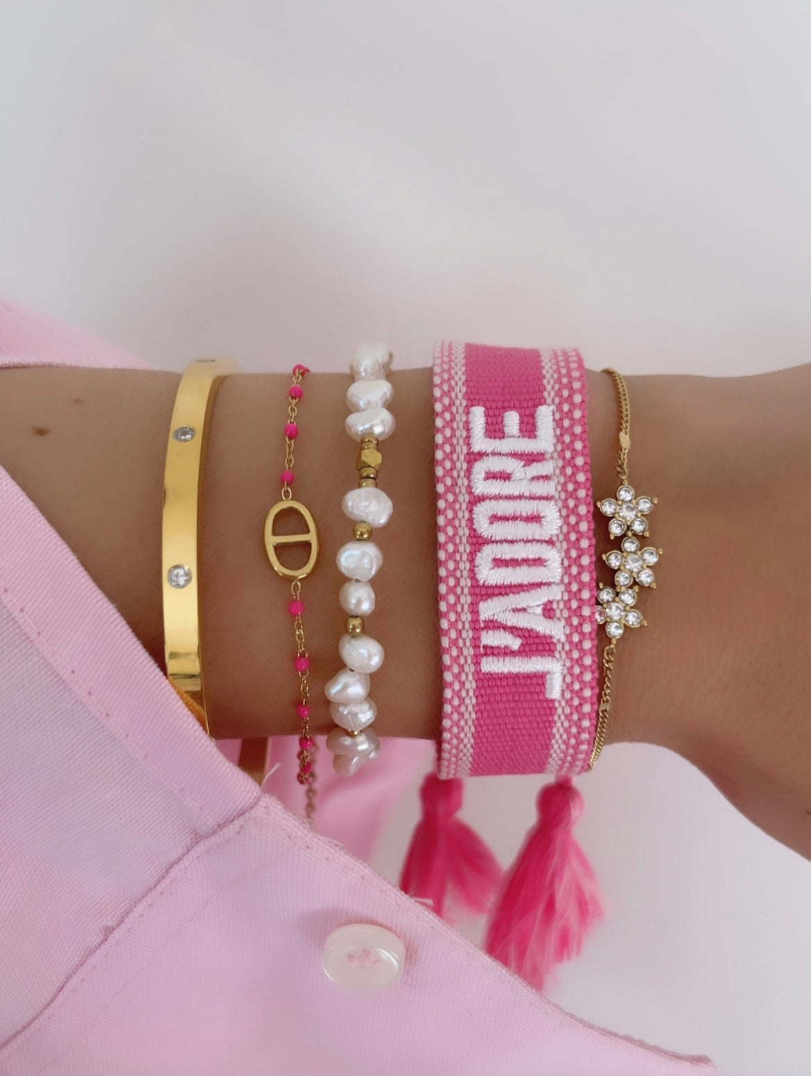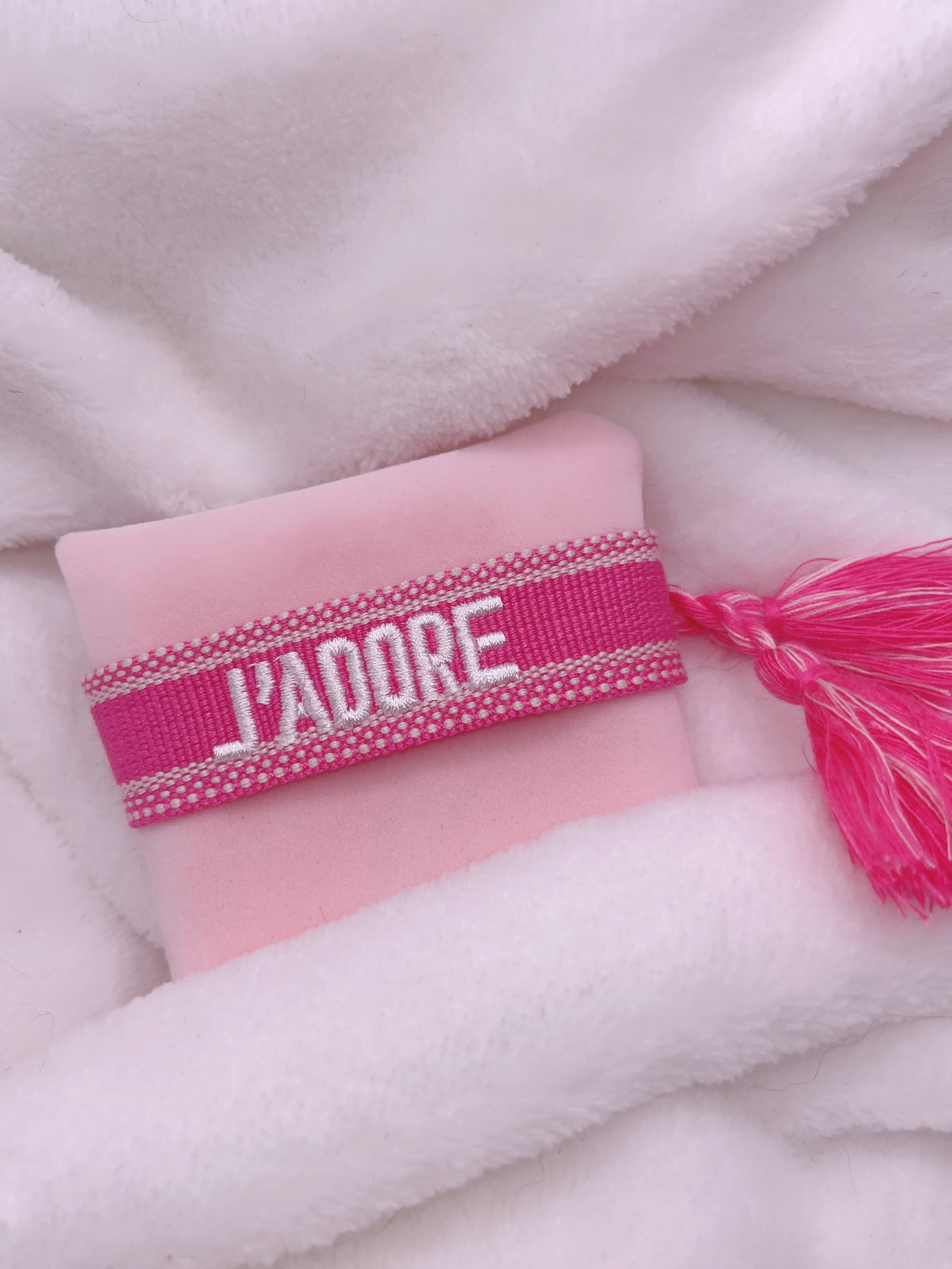 BRACELET BRODÉ J’ADORE ROSE
